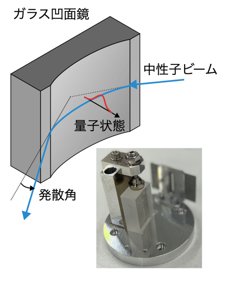 図1 量子状態を作る概念図とガラス凹面鏡の写真。