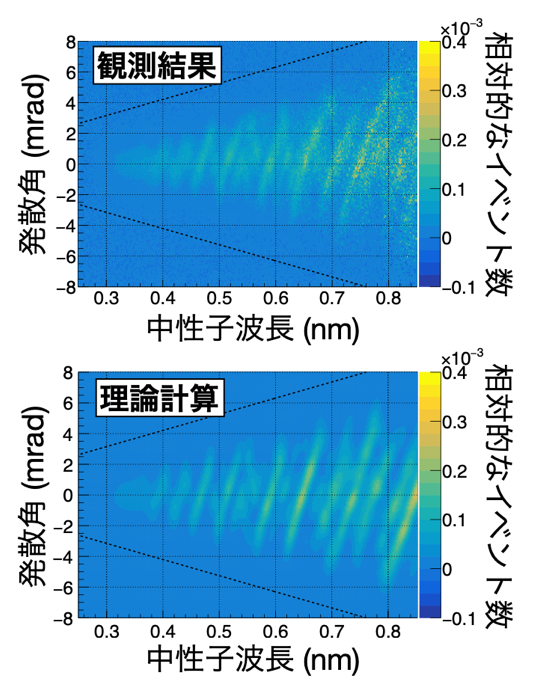 凹面鏡に中性子ビームを沿わせると遠心加速度によって表面を這うような量子状態(ウィスパリングギャラリー状態)が現れます(図1)。重力と加速度が等価であることを使うとこの量子状態は重力によって束縛された量子状態のアナロジーとして扱えるため、仮想的な重力下の量子状態を探索することができます。観測結果は理論計算と良く一致し(図2)、地球重力の700万倍に相当する状況でも量子力学が正しく成り立っていることを2%の精度で検証しました。さらに高い精度で凹面鏡を作成することで量子力学の検証に留まらず、鏡と中性子の間に働く未知の相互作用を探索することも可能となります。研究内容のユニークさと、基礎的な実験への興味深いステップであることが評価され、若手奨励賞の受賞に繋がりました。
