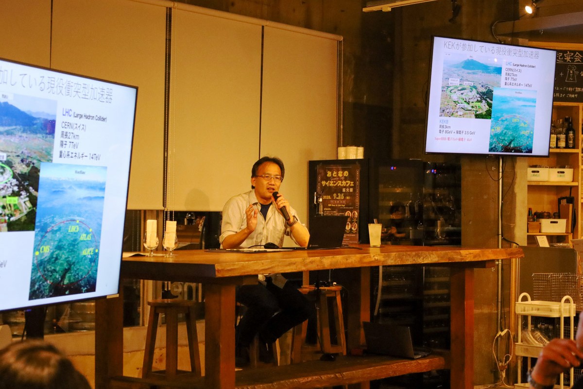 9月26日(金)、KEK素粒子原子核研究所(素核研)とつくばまちなかデザイン株式会社の共催により、「おとなのサイエンスカフェ拡大版」をBeer & Café Engiで開催しました。