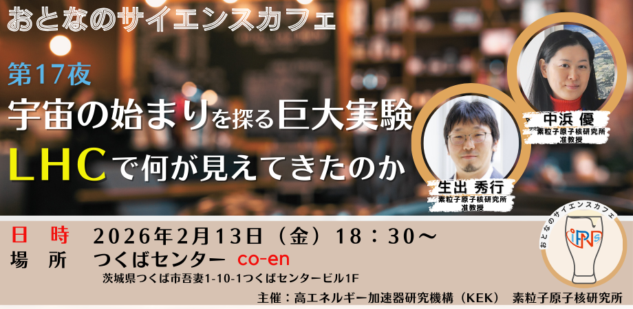 参加者募集:【2/13(金)開催】おとなのサイエンスカフェ第17夜「宇宙の始まりを探る巨大実験―LHCで何が見えてきたのか」 2026年1月7日 壮大な宇宙誕生の謎を解明する重要な手がかりである「素粒子」。高エネルギー加速器研究機構・素粒子原子核研究所は、素粒子や… イベント