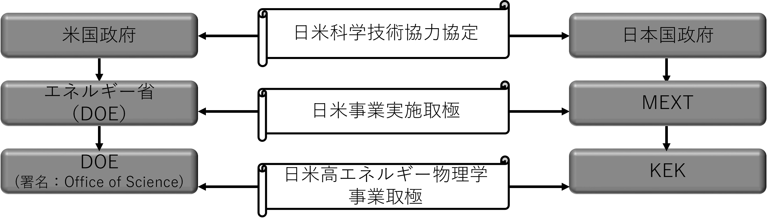 - 「科学技術における研究開発のための協力に関する日本国政府とアメリカ合衆国政府との間の協定」の下、「エネルギー分野及びこれに関する分野における研究開発のための協力に関する日本国文部科学省とアメリカ合衆国エネルギー省の間の実施取極」が締結