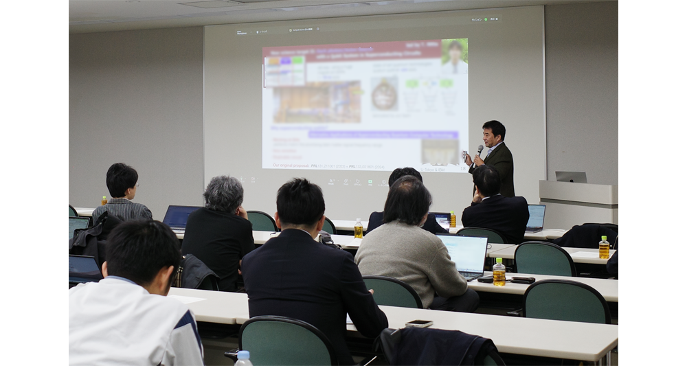 最後に、中央大学理工学部・准教授の松崎雄一郎氏からは、近年進展が目覚ましいIoT(モノのインターネット)のセキュリティ対策のアイデアとして、量子性を用いることで完全な秘匿性の保証されたIoTの理論的枠組みについて解説がありました。量子センサ、量子コンピュータ、量子通信を統合化・複合化することで実現する高効率・高速・安全な情報処理システムや多機能性を有するデバイスの提案が行われ、将来の社会実装についても議論されました。