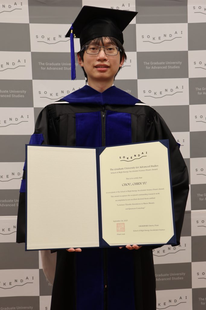 Chou, Chien-Yu (Sokendai, The Graduate University for Advanced Studies), a Taiwanese international student at the Theory Center, has been awarded the Deanʹs Award.